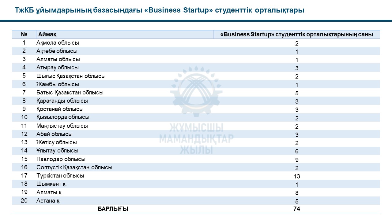 ТжКБ ұыймдарының базасындағы “Business Startup” студенттік ортарлықтары