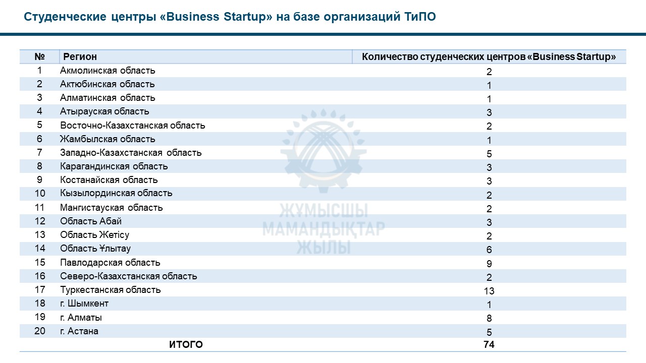 Студенческие центры “Business Startup” на базе организаций ТиПО